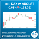 Im August schloss der DAX bei 23.902,21 Punkten und damit -0,68 Prozent (-163,26 Punkte) niedriger als im Vormonat. Von den 21 Handelstagen dominierten 11 positive gegenüber 10 negativen. Der DAX erreichte in diesem Monat ein Intraday-Hoch von 24.536,11 Punkten. Das Verlaufstief lag bei 23.380,94, was […]