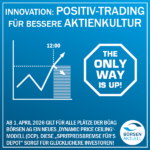 Düsseldorf/Hamburg/Hannover, 1. April 2026 – Nach dem Vorbild der aktuellen Preisregulierungen am Energiemarkt geht die BÖAG Börsen AG ab heute neue Wege, um Investoren vor fallenden Kursen im Depot zu schonen. Nach intensiver Vorbereitung mit Verbraucherschutz- und Aufsichtsbehörden wird das neue Dynamic Price Ceiling Modell (DPC) […]