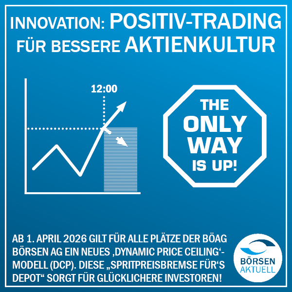 Düsseldorf/Hamburg/Hannover, 1. April 2026 – Nach dem Vorbild der aktuellen Preisregulierungen am Energiemarkt geht die BÖAG Börsen AG ab heute neue Wege, um Investoren vor fallenden Kursen im Depot zu schonen. Nach intensiver Vorbereitung mit Verbraucherschutz- und Aufsichtsbehörden wird das neue Dynamic Price Ceiling Modell (DPC) ab dem 1. April 2026 an den Börsen in Düsseldorf, Hamburg und Hannover eingeführt. „Damit realisieren wir als erster Börsenbetreiber eine Art Spritpreisbremse für das Depot und sorgen so für glücklichere Investoren“, erklärt der Vorstand.